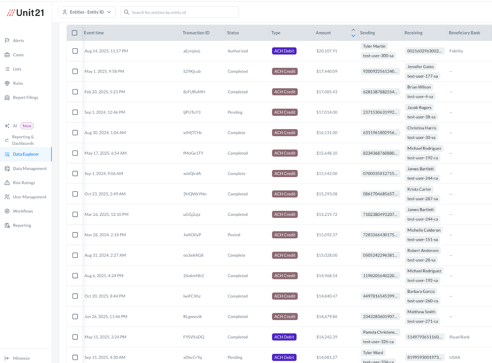 The NACHA guide emphasizes that institutions must adopt risk-based, adaptive, and automated monitoring to meet 2026 expectations. Unit21 was built for exactly that.
