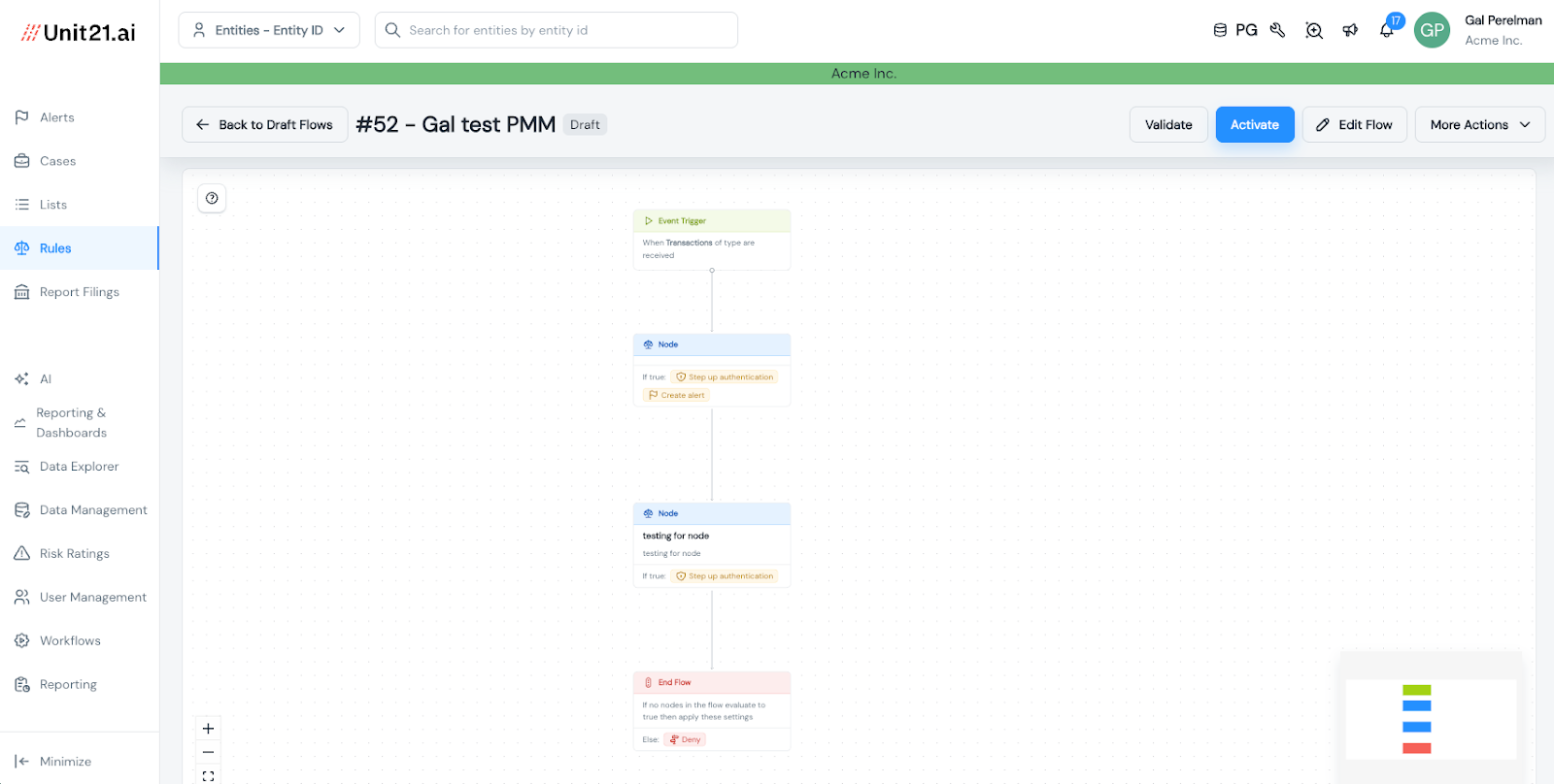Rules Orchestration adds a new capability to Unit21's real-time engine: Flows.