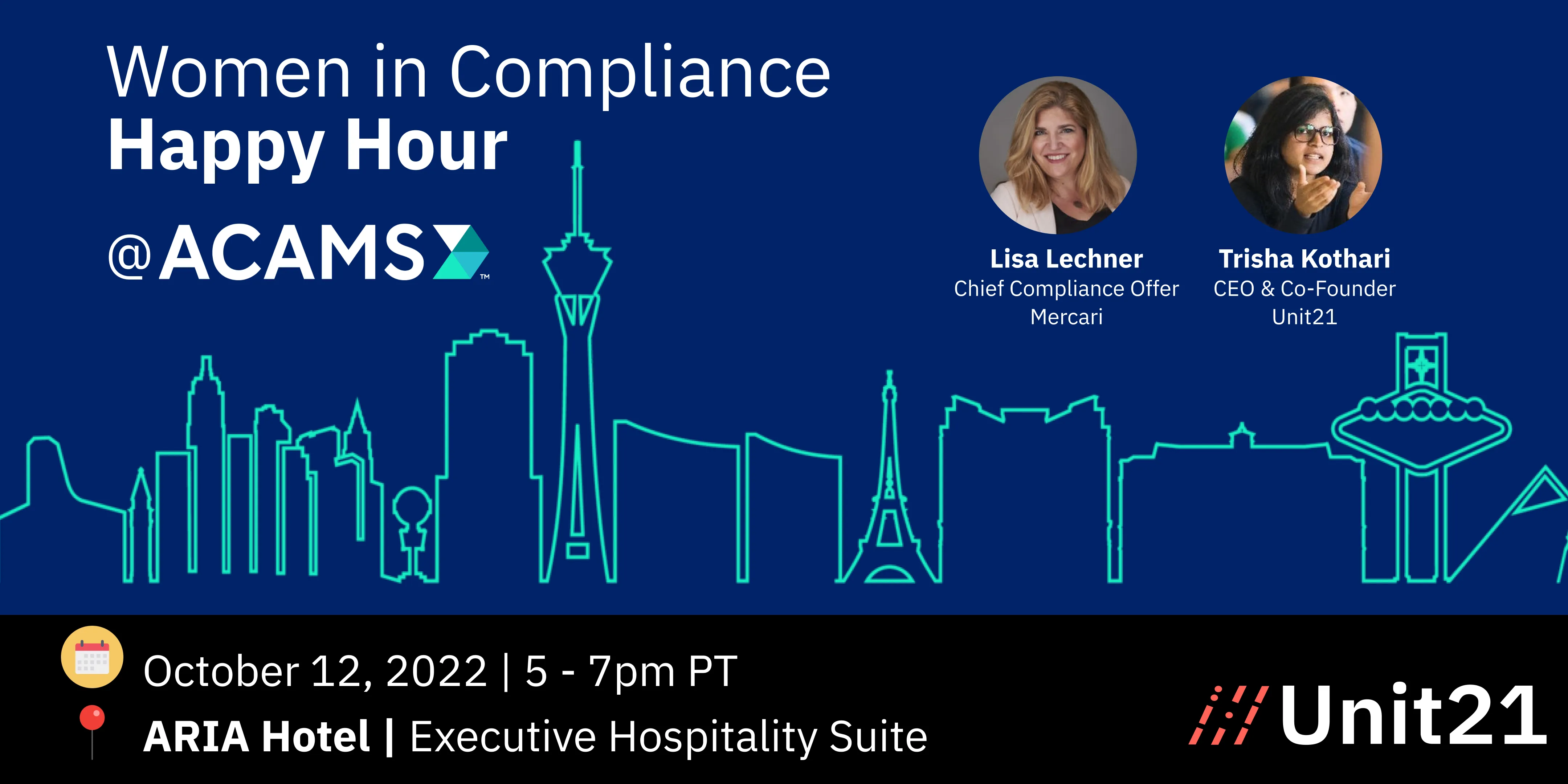 Join us on Wednesday, October 12th, from 5:00pm - 7:00pm at the Executive Suite in ARIA for a gathering of Women In Compliance at ACAMS.